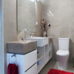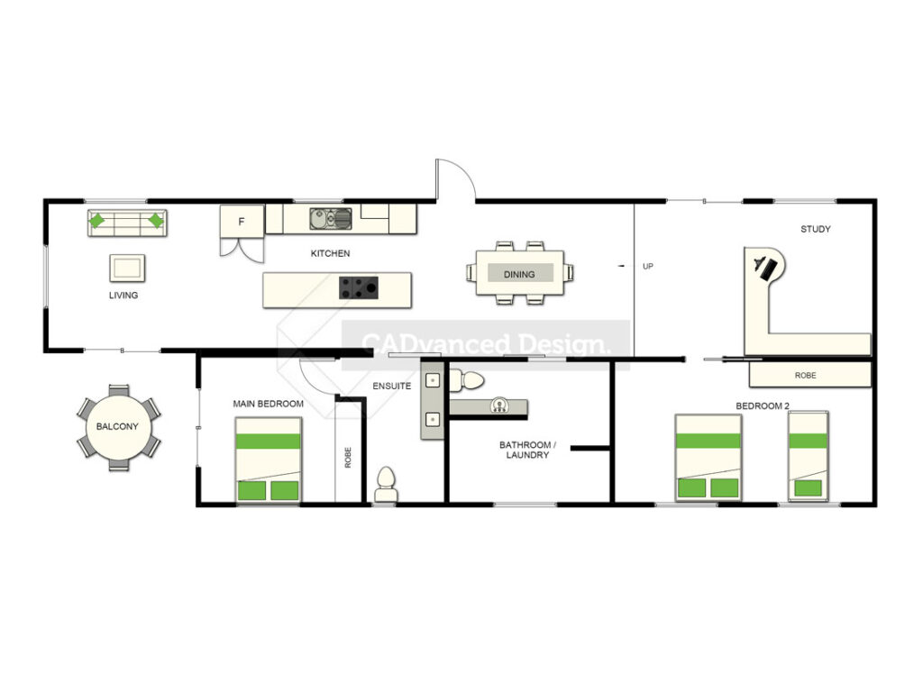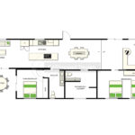 By extending the external walls to suit the existing roof line, the main living spaces were opened up to create a larger entertaining area with more water views. The long kitchen island bench draws your attention to the water, while creating a link between the dining room and the lounge. On the other side of the home, the second bedroom was converted into a main bathroom and laundry, which meant that the existing bathroom could be converted into an en-suite.